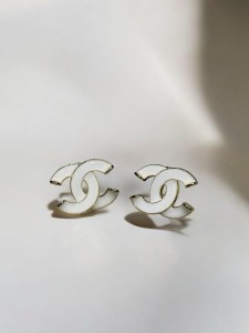 Złote kolczyki z emalia perłowa ze stali chirurgicznej