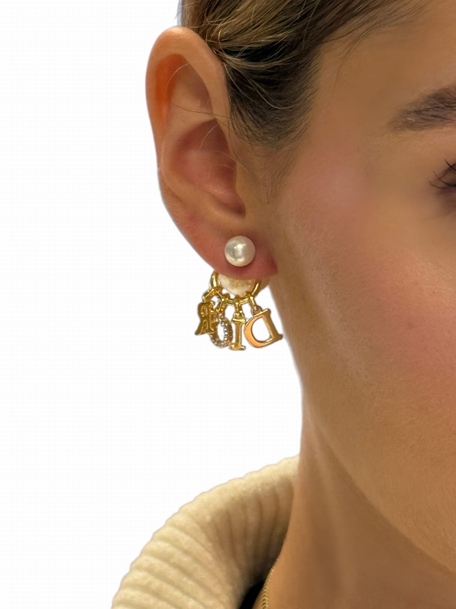 N°7 Złote kolczyki D z perłami